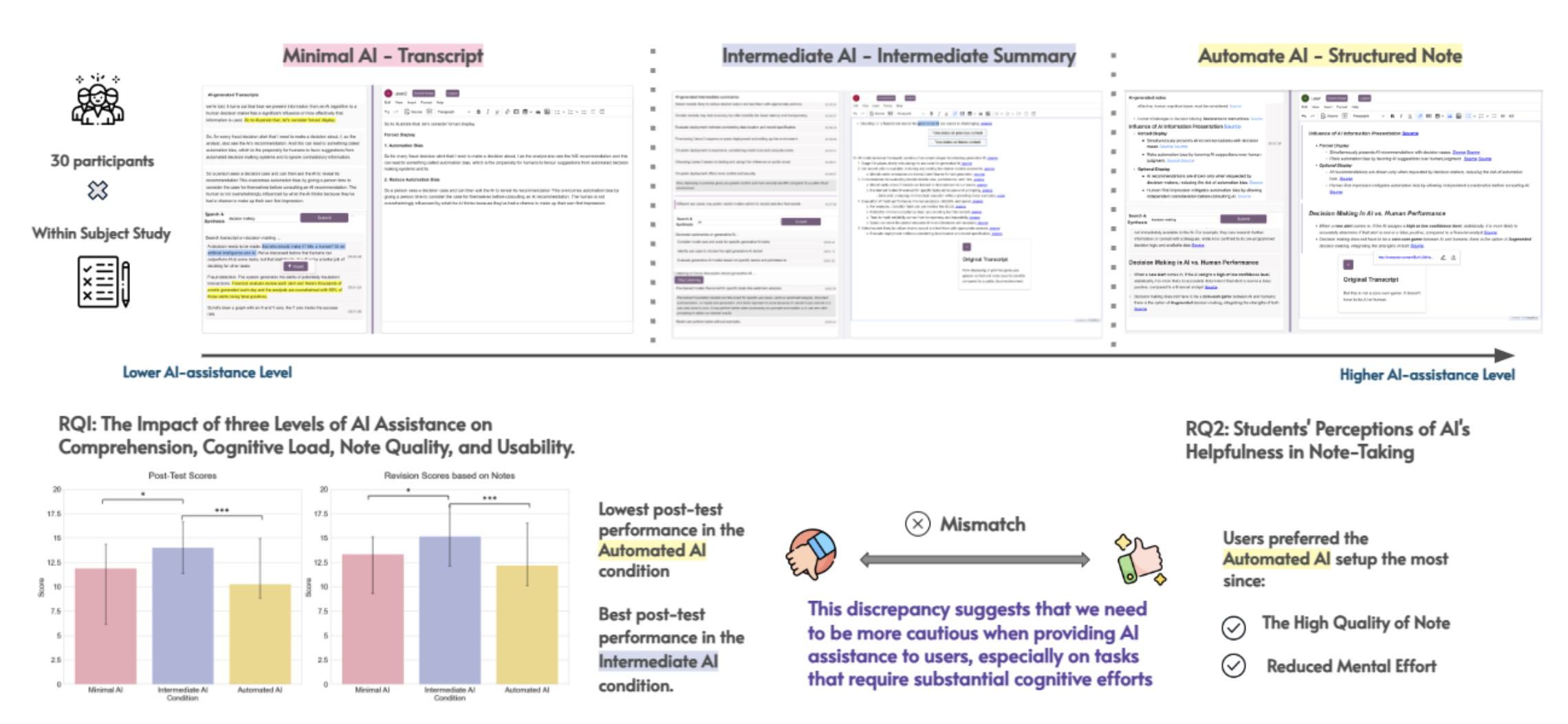My work has been published in premier venues including: CHI, CSCW, DIS, and AIED , and has received several Best Paper Honorable Mention Awards. Together, my work contributes to a broader vision of AI systems that support human cognition, advance mechanisms for human–AI alignment and AI-mediated common ground, helping people and teams think, learn, and coordinate more effectively with and through AI.